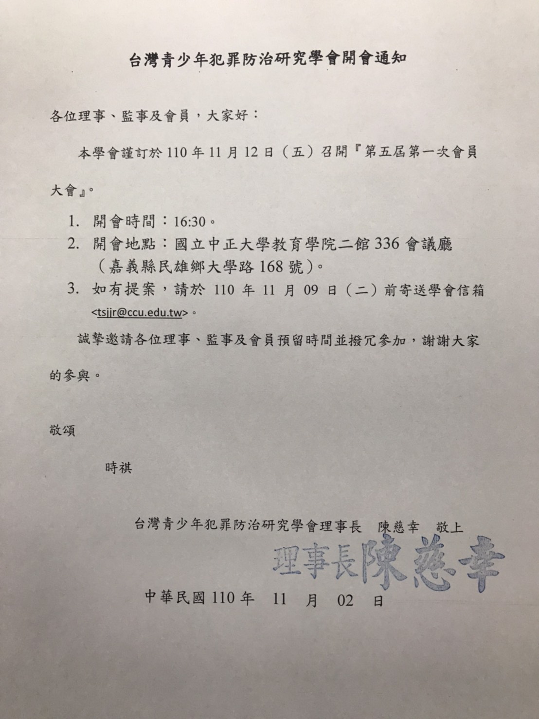 賀!本會副秘書長 曾淑萍 助理教授 榮升國立中正大學犯罪防治研究所副教授 |